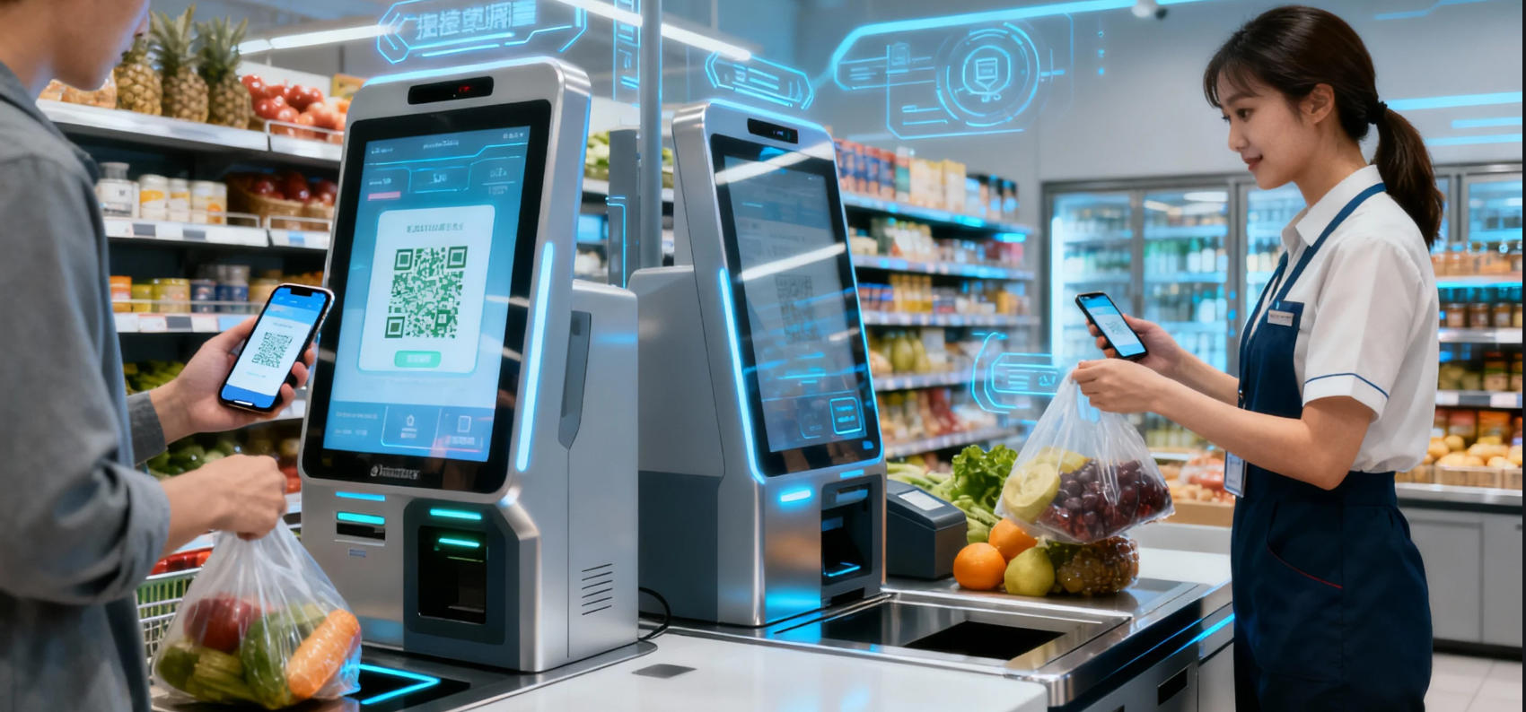 Hybrid Intelligence Combines self-service terminals, staff assistance, and mobile scanning to deliver seamless customer experiences.