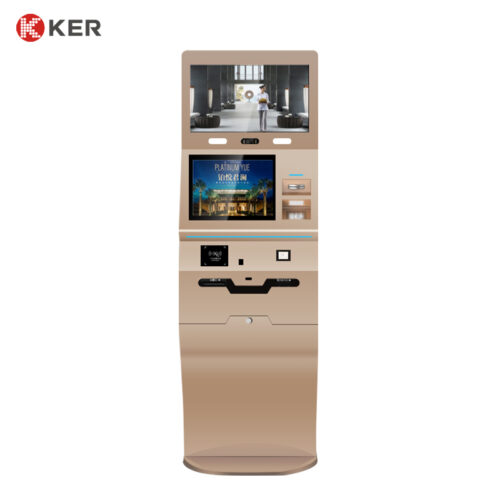 32 inch hotel self-service kiosk luxury gold OEM hotel self-service check-in and check-out service kiosk hotel kiosk