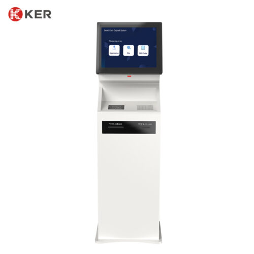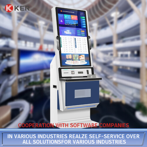 21.5-inch hotel self-service registration booth with passport and ID scanner, touch screen ticket vending machine, cash payment SDK function