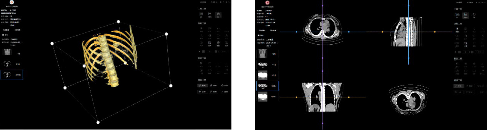 - MPR, 3D VOLUME reconstruction, supports virtual cutting